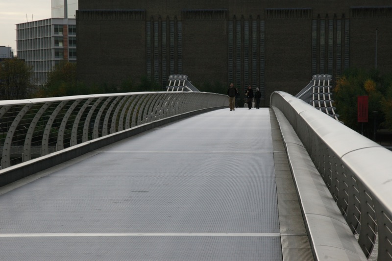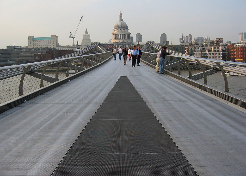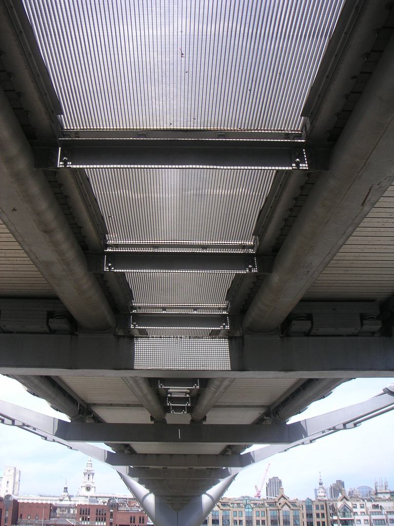 The footbridge is 325 m long and constructed of three main sections (81 m, 144 m and 108 m). The bridge sections are suspended from a unique cable system only 2.3 m high on the main 144 m section. This gives the Millennium Bridge its characteristic appearance.