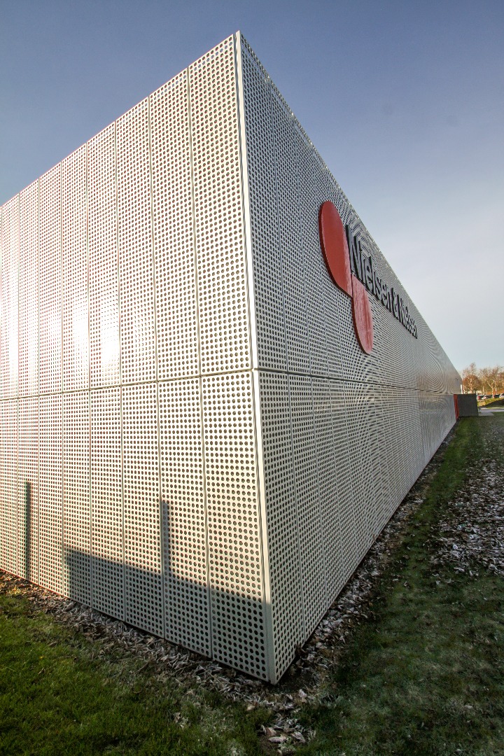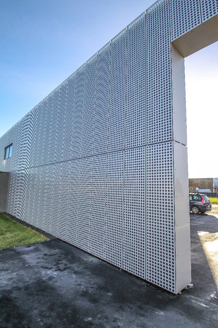The surface is anodized in natural colour after perforating and bending the cassettes to preserve the colour on all the edges of the perforation.