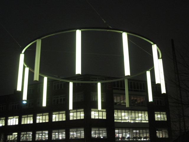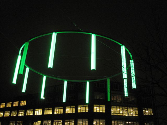 The crown was constructed by Light Constructor, designed by Lasse Schelde and created in cooperation with Agendacenter Amager, Røde Møllegård 1, Copenhagen Municipality.