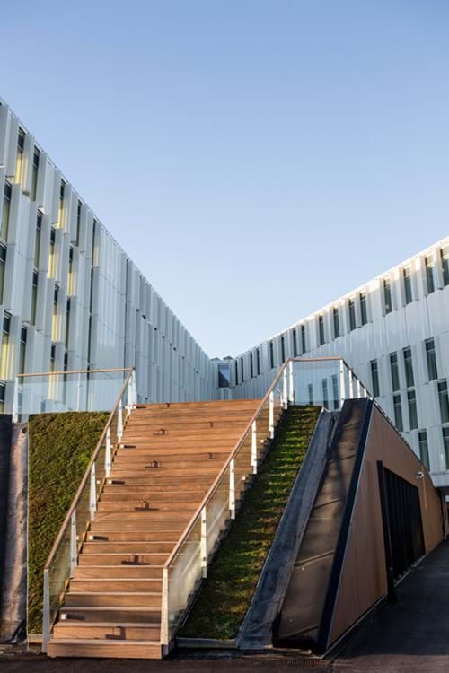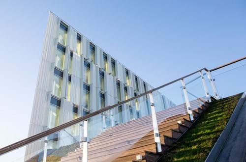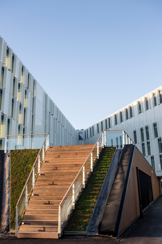 The building was already given the prestigious EU award”Green Building Award for New Buildings” in 2012. At the same time, it is registered for receiving the international sustainability certification, LEED’s gold-status for its work with water consumption, climate and energy. In this way, a number of actions were taken to reduce the consumption. Among other things, solar cells cover great parts of the roof for covering the consumption of electricity of the building. They cool the building with help from the solar screening and seawater. Moreover, they collect rainwater that is used in the toilets.